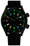 Dial: Black, featuring hours, minutes, sweep seconds, and a magnified date