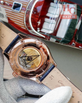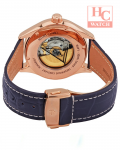 Rose gold-tone stainless steel case with a grey rubber strap. Fixed rose gold-tone bezel with a grey outer rim. Grey (skeleton window) dial with rose gold-tone hands and alternating Roman numeral and index hour markers. Minute markers around the outer rim. Dial Type: Analog. Luminescent hands. Small seconds subdials. Automatic movement. Scratch resistant mineral crystal. Screw down crown. Transparent case back. Round case shape. Case size: 45 mm. Case thickness: 13.45 mm. Band width: 24 mm. Tang clasp. Water resistant at 200 meters / 660 feet. Functions: hour, minute, second. Sport watch style. Bulova Marine Star Automatic Grey Dial Mens Watch 98A228.