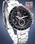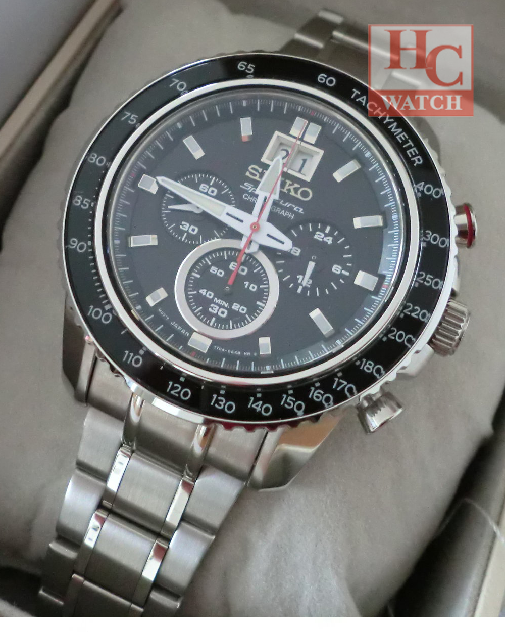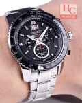 SEIKO Sportura SPC137P1 Chrono Tachymeter Sapphire Black Dial SIlverBracelet