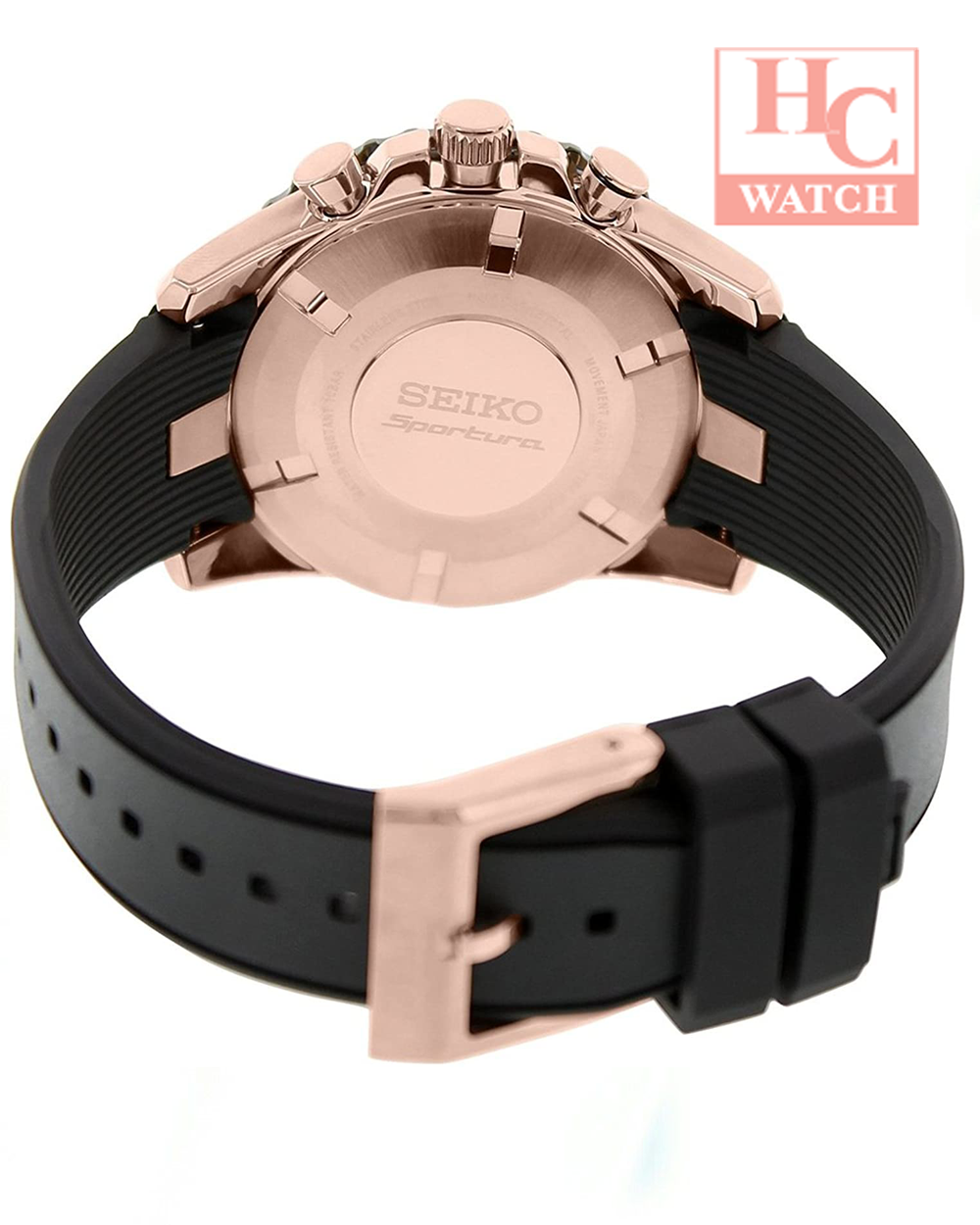 SEIKO Sportura SNAF28P1 Chrono Sapphire Black Rose Gold Dial Black Leather
