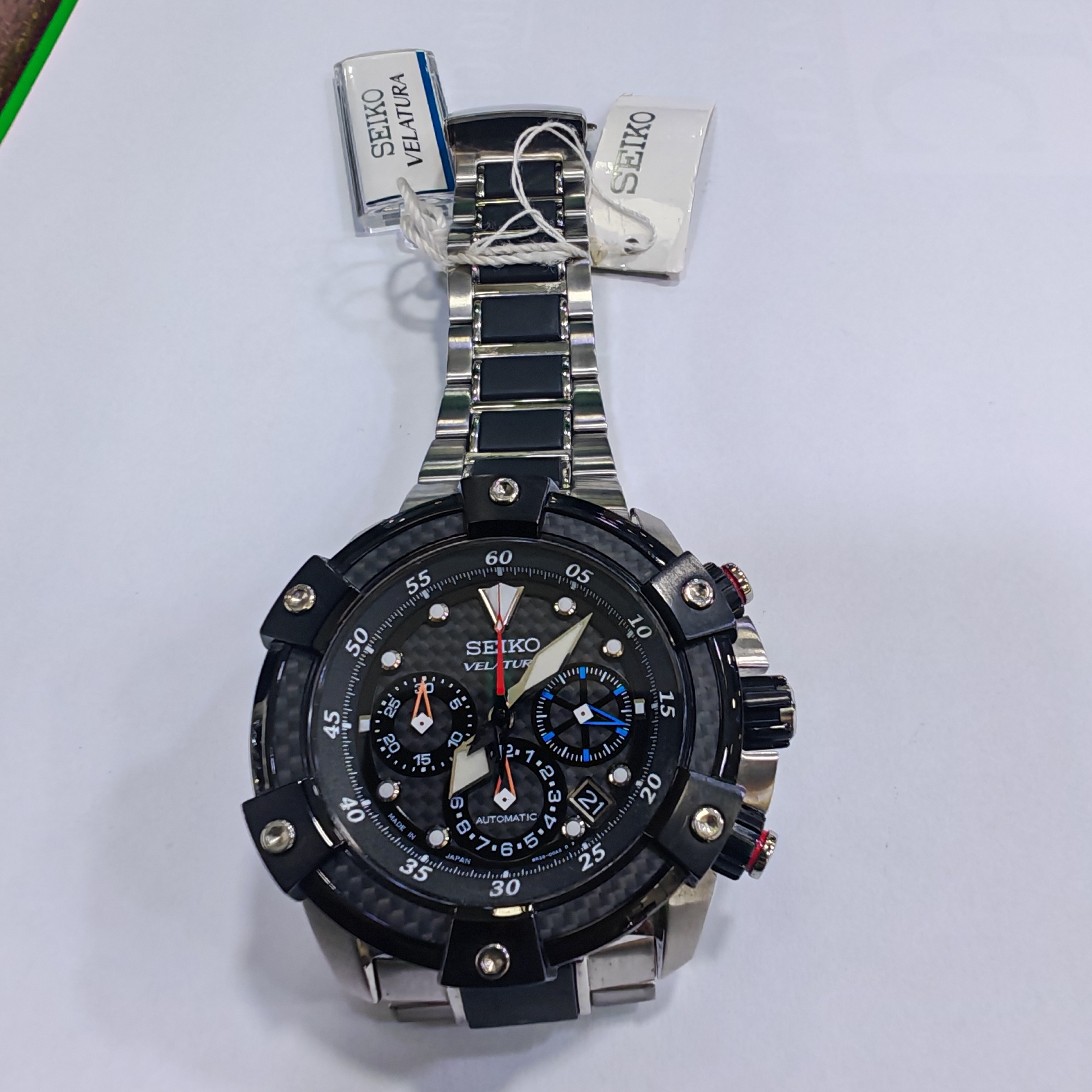 New Seiko Velatura Automatic Chronograph SRQ001J1 Black Dial Stainless Steel Watch