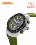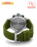 44mm IP silver stainless steel case and IP black bezel with IP green screws