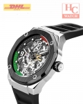 Lightly black smoke dial with white print and green+red+black+white reflector