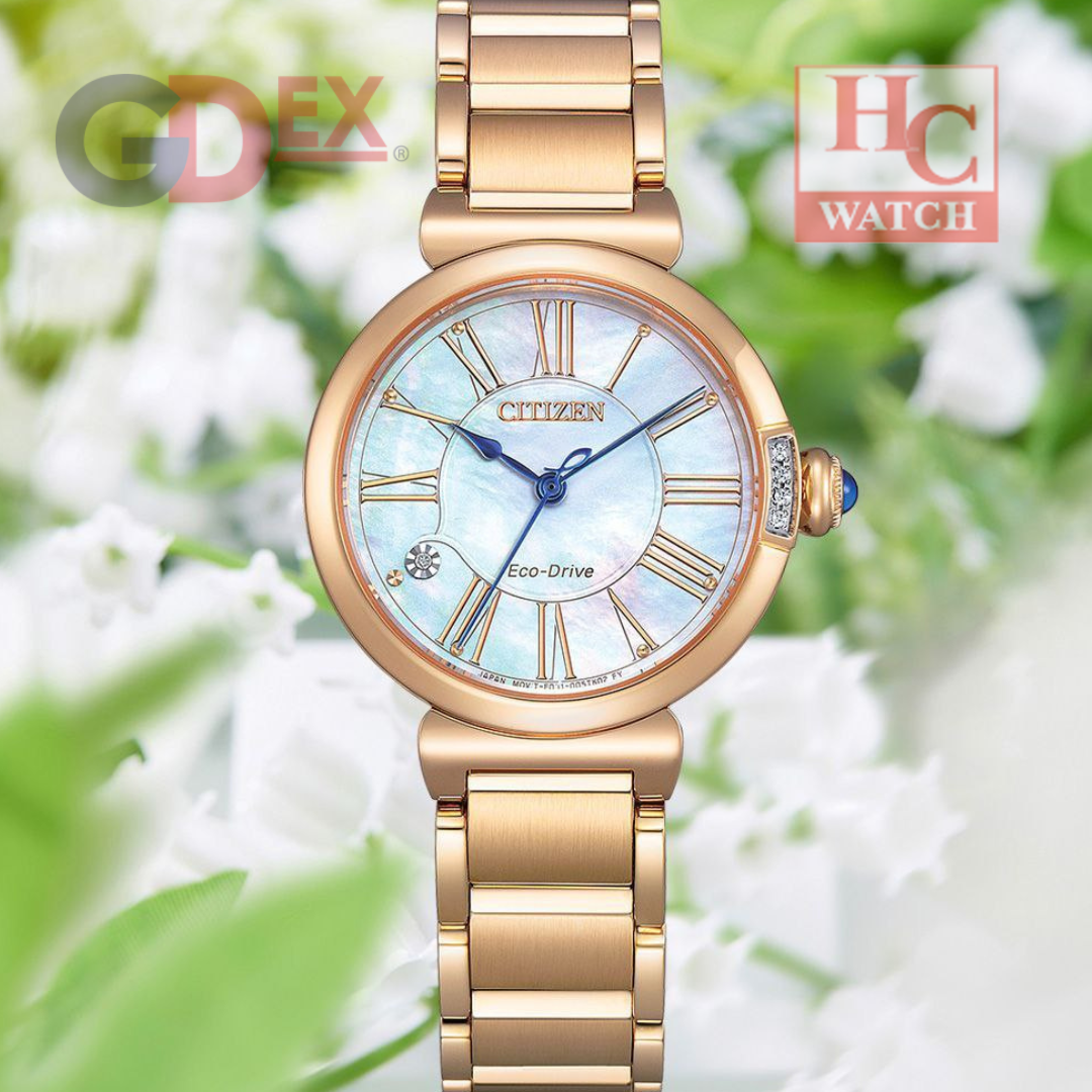 NEW CITIZEN L EM1063-89D MOTHER OF PEARL ECO DRIVE ROSE GOLD LADIES WATCH