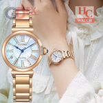 Calibre No. E031 Maximum run time from full charge (Normal Use Condition) Approximately 6 months Movement Eco-Drive Signal Reception Without Radio Reception Function Strap Stainless Steel Water Resistant to 5 bar Weight 72g Thickness 8.3mm Case Size 29.5mm Case Stainless Steel Surface Processing Rose Gold Plating Glass Sapphire Glass Warranty 3 years warranty Specification Mother of Pearl Dial Diamond: 5 Pcs Eco-Drive (recharged by any light source, no need for regular battery replacement) Insufficient Charge Warning Function Overcharge Prevention Function