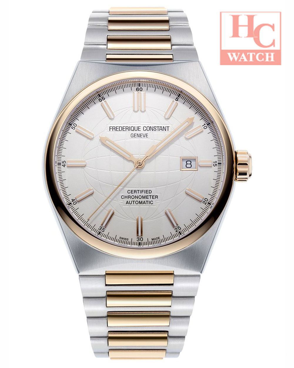 The Frederique Constant Automatic COSC FC-303V4NH2B is a precision-engineered and elegant timepiece designed for men. It features a sophisticated silver dial with a globe decoration and a sleek stainless steel bracelet, making it suitable for both formal and casual occasions.